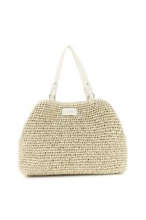 Eine geräumige und vielseitige einfarbige handgefertigte häkeltasche. mit magnetverschluss verstellbaren seitenschlaufen mit karabinerhaken und einem goldfoliengeprägten logo-etikett – perfekt für sommerliche looks. maße: 44 cm (länge) × 31 cm (höhe) × 15 cm (tiefe)