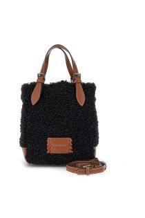 Handtasche aus gewelltem Stoff mit kontrastierenden Kunstlederdetails, einer Nietenplakette und Logo. Abnehmbarer Schulterriemen für vielseitigen Tragekomfort.