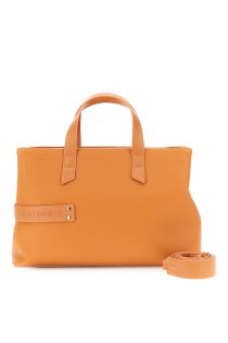 handtasche in genarbter lederoptik mit tpu-schlaufe und logo orange