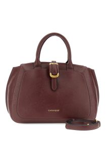 handtasche in saffiano-optik mit aufgesetzter tasche bordeaux