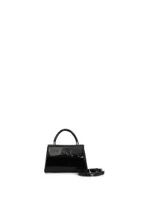 Starre minibag in lackoptik mit griff und überschlag. cafènoir-logo passend zur tasche. magnetverschluss. tasche mit schulterriemen.