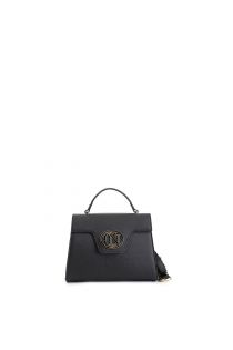 handtasche mit klappe aus saffiano-leder mit passendem ovalen emaillierten logo black