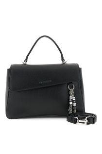 handtasche mit klappe in genarbter lederoptik und farbenfrohem logo-anhänger black
