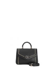 Handtasche mit goldener metallkettenapplikation und cafènoir-logo. metallgriff mit rohr. magnetverschluss. abnehmbarer schultergurt.