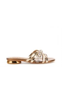 hausschuhe aus laminiertem lederimitat mit strassverzierungen gold