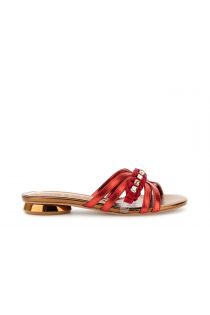 hausschuhe aus laminiertem lederimitat mit strassverzierungen red
