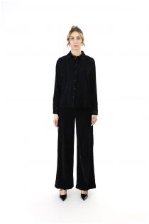 Elegantes langarmshirt. aus strukturiertem samt mit schillerndem effekt. knopfverschluss. entspannte passform passend zu fließenden hosen oder jeans.