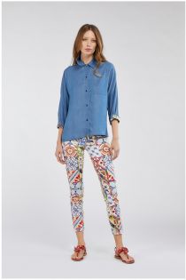 Hemdbluse mit Fledermausärmeln aus Tencel-Stoff in Jeans-Optik. Das Stück besticht mit Akzente setzendem bedrucktem Stoff