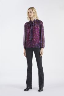 Hemdbluse mit Schluppenkragen mit romantischem, femininem Stil aus bedrucktem Fil Coupé