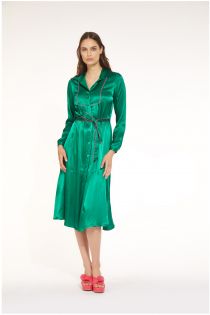 Hemdblusenkleid aus Viskose-Satin, mit einer kontrastierenden Satinbordüre verziert