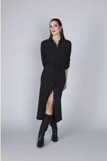 Fließendes Hemdblusenkleid mit langen, hochkrempelbaren Ärmeln und Bindegürtel. Perfekt für einen lässigen und vielseitigen Look. Das Model ist 172 cm groß und trägt Größe S. Passform: normal.