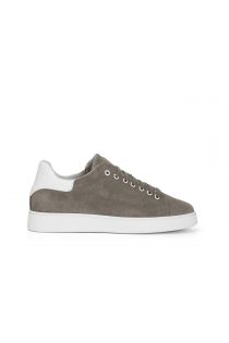 Herren-schnürsneaker aus wildleder und leder. futter und innensohle sind aus leder. schuh mit abgerundeter form.