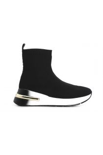 High-top-laufschuhe für damen mit stretchmaterial. die innensohle ist aus leder.