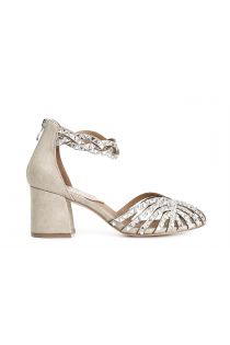 hinten geschlossene gitter-sandalen mit strassbesetztem dreieck taupe