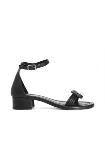Ledersandalen mit knoten. blockabsatz. knöchelriemchen.