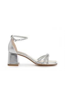 Hinten geschlossene sandalen mit drei riemchen und einem knöchelriemen der mit mikrostrass besetzt ist. absatzhöhe 65 mm.