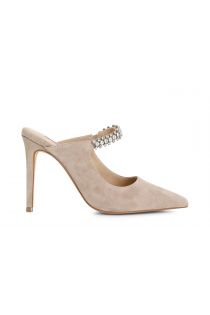 hinten offene raulederpumps mit strasssteinen powder