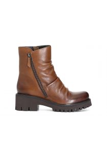 Hochfrontpumps aus gecrashtem Leder mit schrägem Reißverschluss. Dicker Absatz aus Gummi und Sohle in Profiloptik