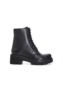 Hochfrontpumps aus Leder mit dünner Schnürung vorn. Sohle und Absatz akzentuiert und ins Auge fallend.