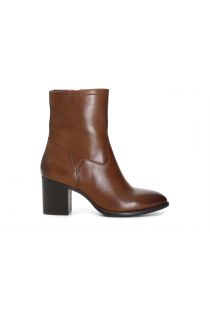 Hochfrontpumps aus Leder in klassischer, zeitloser Form. Mit einem dicken, eckigen Absatz mittlerer Höhe. Sichtbare Steppnähte an der Anziehlasche und leicht spitze Form. Verschluss mit Reißverschluss.