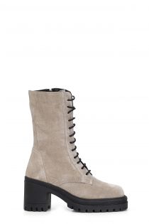 hochfrontpumps aus rauleder mit schnürung und profilsohle