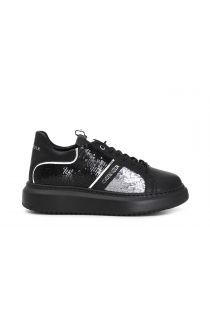 Sneaker mit hochgezogener Sohle und Oberschuh aus Leder, dem aufgenähte, zweifarbige Pailletten einen besonderen Touch verleihen. Hochgezogene Sohle.