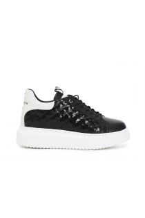 Sneaker mit hochgezogener Sohle und Oberschuh aus Leder, dem aufgenähte Pailletten einen besonderen Touch verleihen. Hochgezogene Sohle.