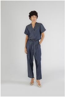 Hosen mit geradem bein und falten auf der vorderseite sind die perfekte mischung aus stil und komfort. sie bestehen aus tencel-jeansstoff und bieten eine bequeme und vielseitige passform. ideales modell für lässig-schicke looks.