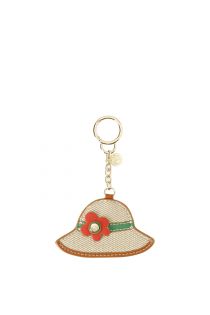 hut-schlüsselanhänger mit blume, medaille mit logo tan