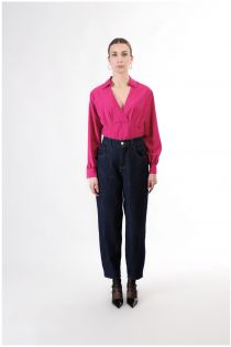 Jeans im cocoon-fit mit elastischem bund hinten aus weichem und fließendem festem denim-canvas. jeans die ihre bewegungen sanft begleiten mit lockerer passform perfekt als basis für die kreation ihres lässigen stils.