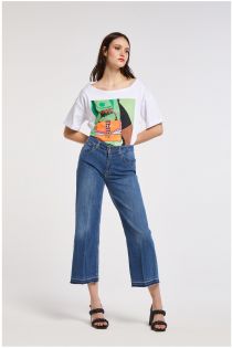 Jeans greta culotte-modell aus superstretch-gewebe mit ausgefranstem saum