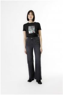 Denim-jeans mit weitem beinschnitt. kostbare stickereien auf den vordertaschen mit perlen in verschiedenen größen und farben. der röhrenförmige schnitt verleiht dem look eine junge und trendige note. ideal um das outfit mit einem einzigartigen und bequemen stil zu vervollständigen. perfekt für jeden anlass und garantiert unvergleichlichen komfort.