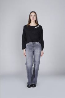 jeans mit weitem bein und strasssteinen an den seiten grey