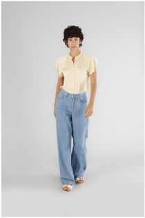 Weite jeans im palazzo-stil aus lockerem denim-canvas. gürtelschlaufen fünf taschen knopf- und reißverschluss. verleiht ihrem outfit originalität und glamour.