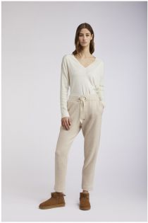 Sportliche jogger-hose aus einem wärmenden gebürstetem viskose-fleece. äußerst bequemes funktionelles und modisches kleidungsstück.