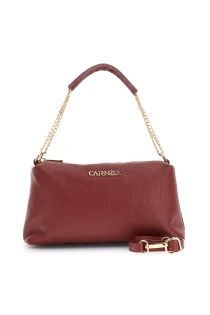 kameratasche aus leder mit kette und verstellbarem schultergurt bordeaux