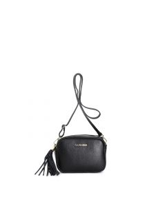 kameratasche aus strukturiertem leder mit schultergurt mit karabinerhaken und quaste black