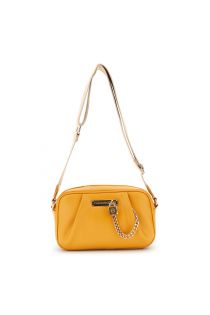 kameratasche in lederoptik mit metallaccessoires, schloss und kette orange