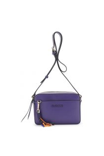 kameratasche in saffiano-lederoptik mit mehrfarbigen anhängern purple