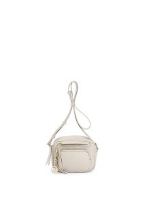 Kameratasche mit vordertaschen und personalisiertem metallanhänger. einzelfach und innentasche mit reißverschluss. reißverschluss.