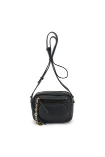 Kameratasche mit vordertaschen und personalisiertem metallanhänger. einzelfach und innentasche mit reißverschluss. reißverschluss.