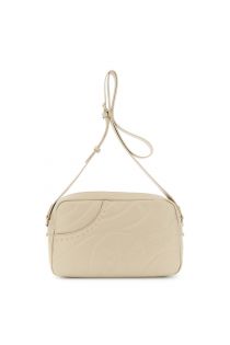 Kameratasche aus Kunstleder mit gesteppter Polsterung in Wellenoptik, Ziernieten und verstellbarem Schultergurt für praktischen und vielseitigen Einsatz.