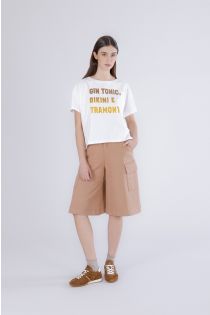 kastenförmiges t-shirt mit dem slogan „gin tonic, bikini und sonnenuntergänge“ off white