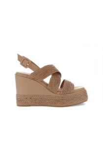 keilsandalen mit gekreuztem absatz in gewebter kunstlederoptik tan