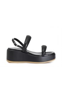 keilsandaletten mit doppeltem riemen mit strasssteinen black