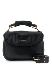 klappentasche in lederoptik mit metallgriff und zierfäden black