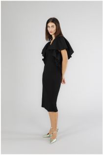 kleid aus bi-material mit rüschen an den schultern black