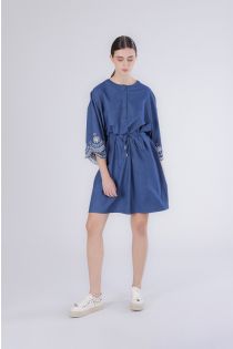 kleid aus tencel-denim mit stickereien an den ärmeln medium blue