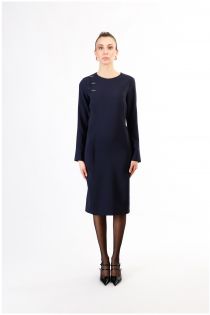 Etuikleid mit rundhalsausschnitt und künstlichem portemonnaie-motiv mit personalisierten veredelungsdetails. das kleidungsstück hat lange ärmel und ist aus bi-stretch-stoff gefertigt. verdeckter reißverschluss hinten. schlichtes und vielseitiges kleid perfekt für das büro feminin und gleichzeitig praktisch um es immer in ihrer garderobe zu haben.