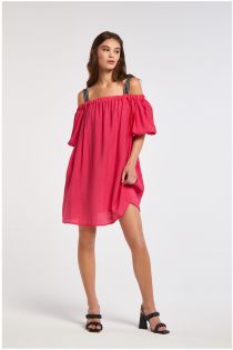 Kleid mit ballonärmeln und schulterpolstern und logo-gummizug